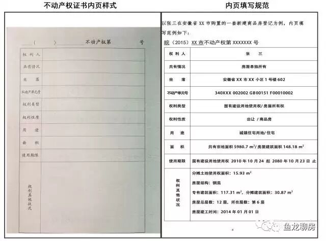 《不动产权证书》内页重点内容填写释义(国土资源部不动产登记中心网站发布)